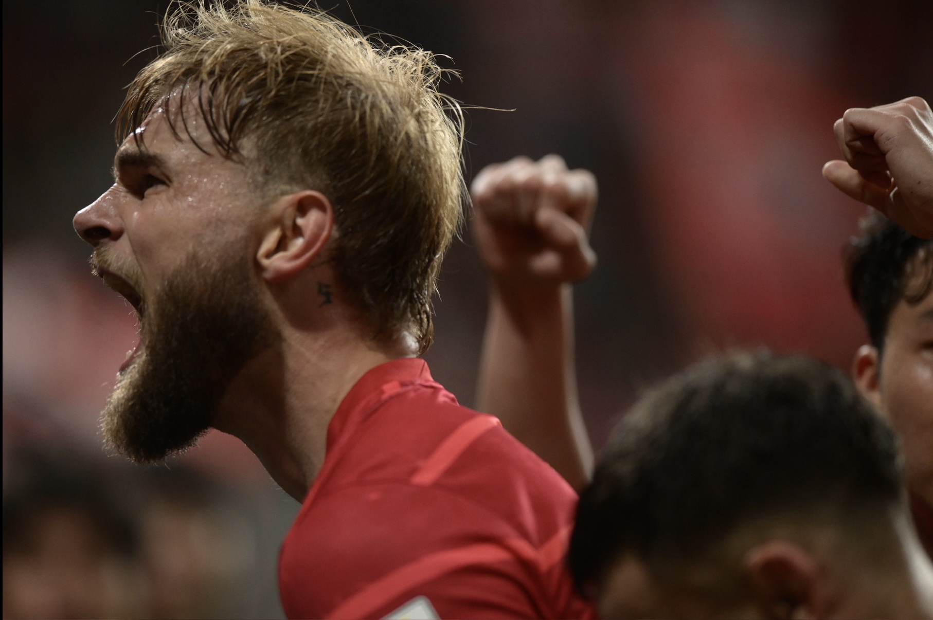 提莫怒吼庆祝进球。陈羽啸摄