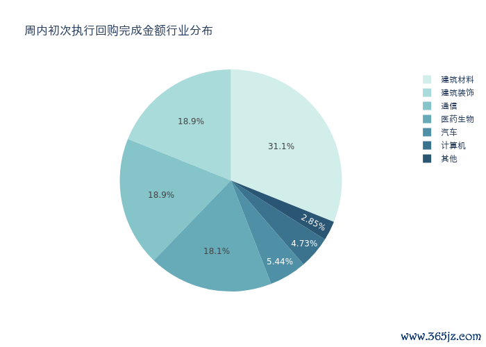 按照初次执行金额所在不同行业分布,金额最高的3个行业分别为:建筑材料、建筑装饰、通信,详情见下图: